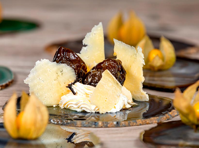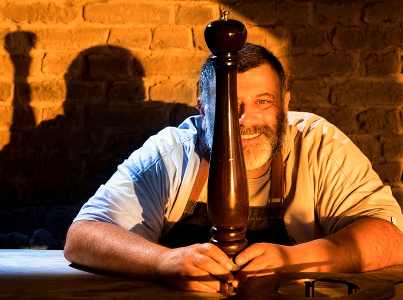 También cocinamos con productos autóctonos del departamento como el butiá, el jabalí y cortezas de árboles que aromatizan y ahúman carnes en horno de hierro a carbón, que junto a nuestras planchas son nuestros principales fuegos.